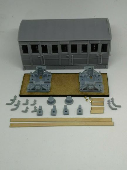 C saloons are the braked versions of B saloons, these can come with windows in the end or plain- your choice when ordering. Below if the B saloon kit. The C saloon and E van come with the brakes modelled.
